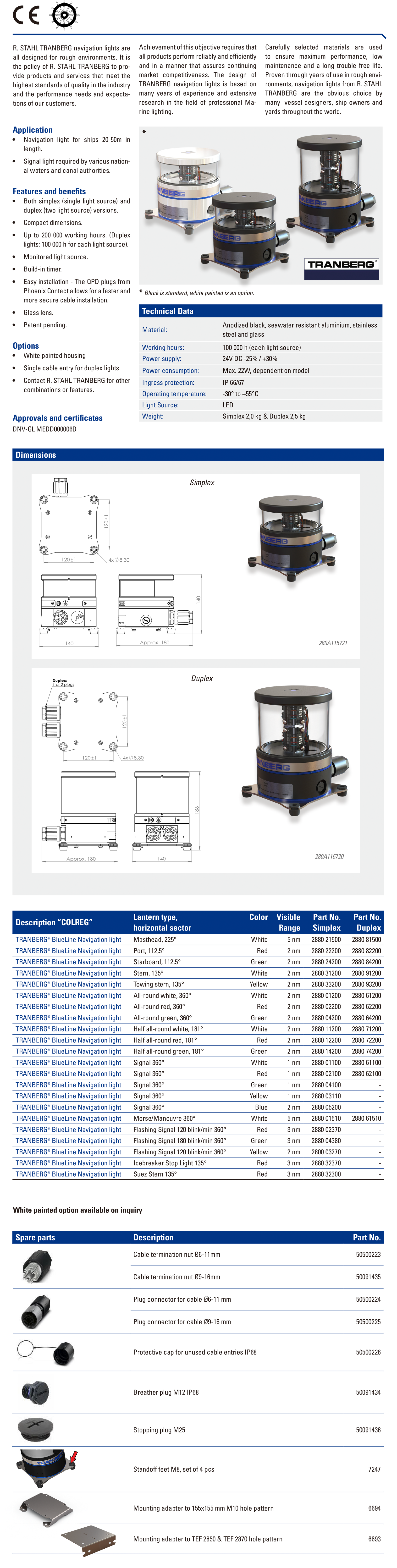 材料: 黑陽極防海水氧化鋁;不銹鋼 防護等級: IP66/67