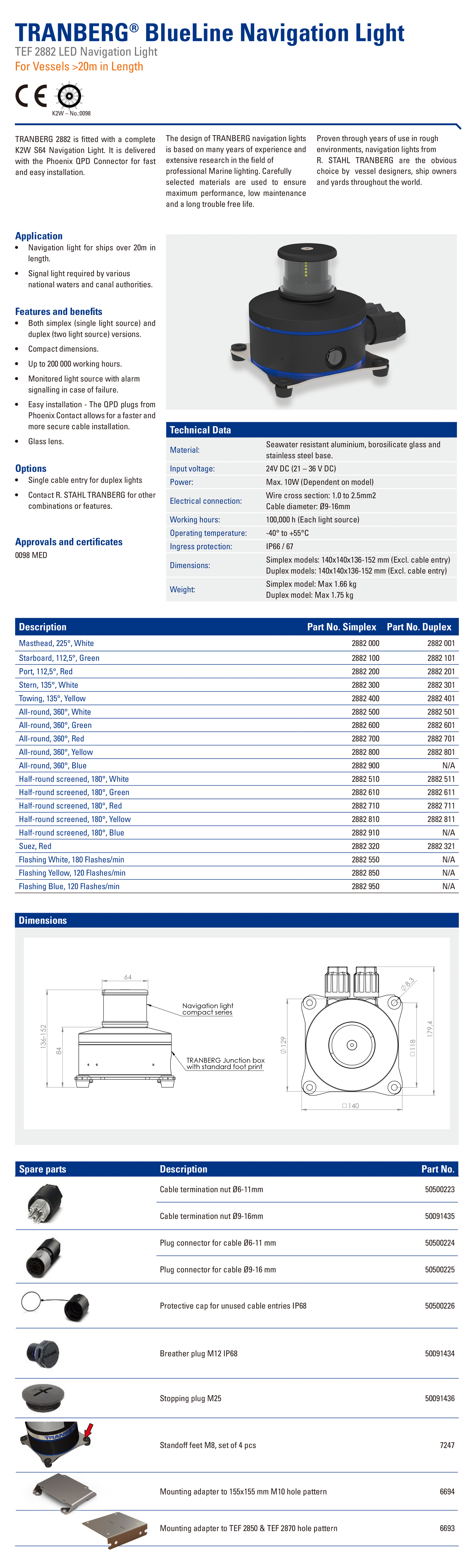 材料: 防海水鋁;不銹鋼 防護等級: IP66/67