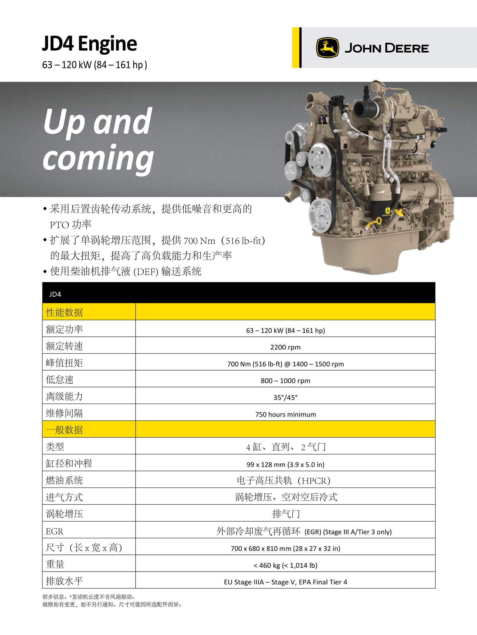 | 排放標準: | EU Stage III A – Stage V/Tier 4 | 重量: | 460kg |