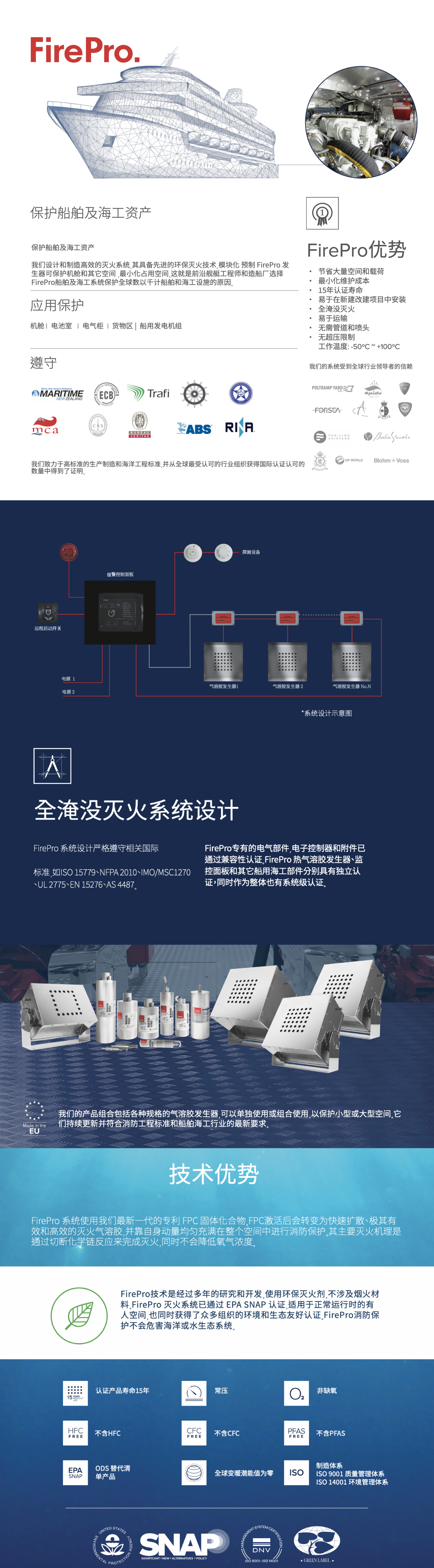| 標(biāo)準(zhǔn): | ISO 15779;NFPA 2010;IMO/MSC1270;UL 2775;EN 15276;AS 4487 | 性能特點: | 無需管道與噴頭;節(jié)省空間與載荷;環(huán)保無害;維持空間氧氣濃度;無超壓限制;15年認(rèn)證壽命;維護(hù)成本低;新造船與改造船均可用 |